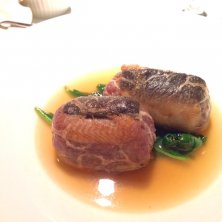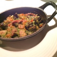温かい前菜。エスカルゴと軽くスモークした砂肝のブルゴーニュ風。にんにく控えめ。