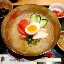 比内地鶏のコラーゲン冷麺。 朝のベーグルが腹持ちよすぎて親子丼は無理でした。今日は母と一緒です。 ランチが夏メニューに変わってました。 GWにまりこ氏とくみこ氏と来た時はこんなにメニュー多くなかったような? とりあえずコラーゲン摂取(笑)