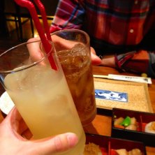 8月15日(月) 名古屋へ これでここのお店2回目⁉ 比内地鶏は究極の地鶏と呼ばれる、幻の逸品 今井丼(親子丼)。 焼鳥も二人で食べました…比内むね皮串/比内皮/うずら。オレンジジュース。
