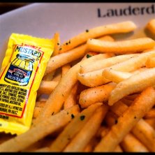 フレンチフライ, pommes frites, って世界中ほぼどこにもあって、これさえあればワインたくさん飲める! と、思います。w 写真は六本木のローダーデールのフレンチフライ。細くてカリカリ!