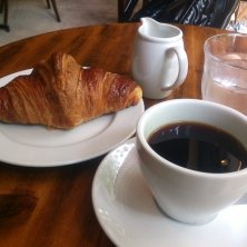 用事があっという間に終わったので、朝ごはん済んでいるけれど“永遠のクロワッサン"のワンコイン・モーニング♡ コーヒー、ボトムレスじゃなかったっけなーとキョロキョロしていたらお替わり注いでくれたw