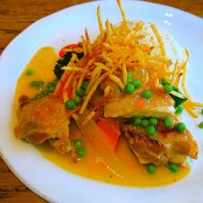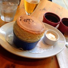 バナナと胡椒のスフレ。サイドディッシュでのんびり飲んでるうちに熱々の焼きたてスフレが出てくるという、このタイミングが素敵。チーズやサーモンなどお食事系のスフレもありますが、どうしても気になったこのメニューで。