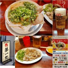 用事終わりに元町に…18時より前だったので、サービスタイム!迷わずサービスラーメンと、生中+ブーツ(豚足)のセットを。これで1,370円!サービスラーメンはチャーシュー少なめと言いつつ大きいのが4枚でボリューム十分、ネギもたっぷりであっさりな醤油ラーメンが美味い。ブーツはプリプリでコラーゲン補給♪それを生ビールで流し込む…最&高(笑)。お腹いっぱい、ほろ酔いでイイ感じ^^。ごちそうさま♫