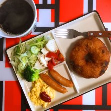 ♬おはようございます♬ 今朝は5時から起きてる長男。 どんどん早起きになるんですけどやめてもらえませんか⁈ヽ(´□`。)ノ・゚ 今朝はパン屋さんのパンで朝ごはん。 ちょっと距離があるからあまり行けないけどハード系のパンが多くてお気に入りです♡ ⚫️シナモンベーグル ⚫️サラダ ⚫️スクランブルエッグ、ウインナー ⚫️珈琲