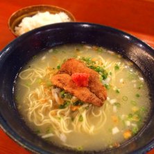 昼飯 お昼限定20食 軍鶏水炊きラーメン ¥700 トロリとした旨味たっぷり水炊きスープは 流石軍鶏鍋専門店♪ 硬めのパッツン細麺と良くあってます(^o^) オーダー受けて揚げ始める熱々竜田揚げも メッチャ美味しい♬ お昼はラーメンのみ20食で終了。 以前はスープがもっと濃厚で40食でした〜 夜も美味しいですよ(^ ^) 体重 80.5kg → 77kg