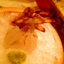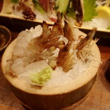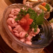 白子ポン酢 お決まりです笑 写真撮り忘れてしまったけど、 車海老のお刺身がここのお店のウリです! 生きてるエビをそのままお刺身にしているので、頭がうごいている、、 身がぷりっぷりでとっても美味でした!!はまりそう!