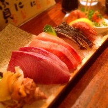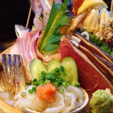 お刺身盛り合わせ(((o(*゚▽゚*)o)))♡ ブリ、炙り鯖、サーモン、水蛸ポン酢、みる貝、かーにー(((o(*゚▽゚*)o)))!♡ おぃしすくてとっても おっきぃんだど!♡