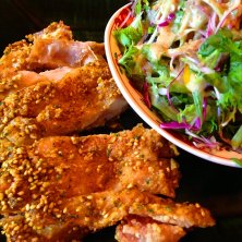 実はすんごい量(サラダはかるくボール1杯位の山盛りに鳥ももゴロゴロ6〜8個キノコやブロッコリーもりだくさん)で周りの席の男性客も量多いよーとのこしてました。 お味はオイスターソースとクリームの美味しい組み合わせ。 私も始めは多いなあ、、と思ってたんだけど、、気がついたら完食してました。食欲の秋だしね!!←くいすぎ