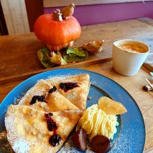 予定外の秋のクレープ (濃厚栗餡・栗の渋皮煮・さつまいもクリーム・カシスソース・ザクザククランブル・マスカルポーネシャンティ・ラムレーズンソース・おいもチップス) 歯医者の帰りにコーヒー豆を買いに行こうとしたら、店に着く直前で定休日であることに気付いた…予定変更でこちらに。パンを買うつもりが、クレープ食べちゃった🤤 朝のパンもちゃんと購入 クロックムッシュ プレーンフォカッチャ マンダリンマロン(甘栗、オレンジ、カシューナッツ、秋限定)めちゃ具沢山なのはシュクレあるある