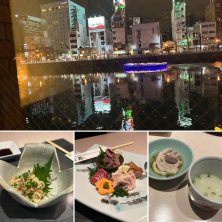 中洲のネオンを見ながら水炊き。 博多の水炊きスープはおいしいねー 〆の雑炊まできっちりいただきました♪ お土産で鶏めしいただけます!
