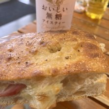 お土産 ◉ハムとモッツァレラのチャバタサンド 春を超えてもう初夏な感じもする京都洛北 阿闍梨餅、マールブランシュ、出町ふたば、お土産のしたいお店はあるけれどここはどうよ?ってやってきた パンも沢山あって楽しい ここの有名な「雪チーズ」 ケーキチーズに木いちご、それを求肥で包んでる新食感な逸品 ちょうどお昼やったしチャバタ買った そうか、しょうか! 最後は親父ギャグで〆ときます