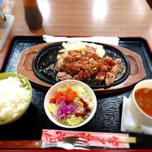 ガーリックカットステーキのセット。次に来たときはタコライスを食べたい🤤🍴