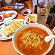 《10月14日(月)の夕飯》 会社か近くなったので休みの日だけど出勤。 なんだか眠気がすごくて全然捗らなーい😭 ちょいちょい休憩しながら何とか夕方まで戦い、主人と待ち合わせ中華。 ばくだん ウインナー 冷奴 そら豆 チャーハン 味噌ラーメン 味噌ラーメンにはニンニクドーン‼️ 今日は早く寝てたっぷり充電するぞー。
