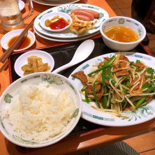 《5月11日(日)のランチ》 前日飲み過ぎて朝ごはんは卵粥しか食べられなかったけどお昼前に復活ー❗️ ご飯作るの面倒だし、お天気が良いので散歩がてらオトンと日高屋でランチしました😊 レバニラ定食 オトンは生ビールに生姜焼きと餃子 お米をモリモリ食べたら満腹で眠くなっちゃった💤