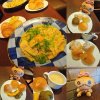 日曜日のランチはパスタ!! イカとキノコと大葉の和風醤油パスタ。奥はイクラとウニのクリームパスタ。あとはサーモンのカルパッチョサラダ。パンは食べ放題。ドリンクも飲み放題(5杯飲んだから元は取れたかな?)