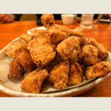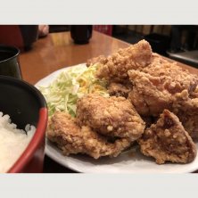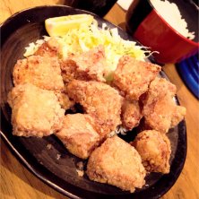大阪本町の煌楽で、テンカラ定食。あっさり系のにんにく醤油味のむね肉の唐揚げが13個も!おいしいけど、半分くらいから飽きてきた…(-_-)