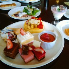 イチゴいっぱいのデザートビュッフェに♡ サラダやスープ、ベーグルもあったので甘いの飽きたらしょっぱいのってできてよかったです(*^^*) ショートケーキとガレットおいしかった♪(´▽`)