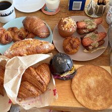 ブランチというより完全に昼🤣 このエピが食べたくなるとトロパンへ向かうオットさん。だからエピは2つ。ひとつじゃ足らんのです。 エピ × 2 サンドイッチ(ハンバーガーかな) カラスクのベジサンド(三角のやつ) アプリコットベーグル 栗粉とバナナの食パン ヒガシヤマ(半円のやつ) カラスク?ってググったらエストニアの大麦のパンだそーで。穀物!雑穀!って感じ。 ベーグルは一般的なベーグルとは違うトロパン的なベーグル。杏仁な香り。美味しいなーおかわりしたい♡
