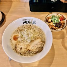 本日のラーメンランチ🍜 べらしおさんへ❣️ 魚介白湯醤油そばを頂きました✨ 芳醇な魚介の香りと、鶏の旨みが、もちもちの、中太麺と絡んでいいね👍😋