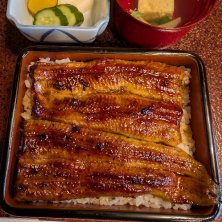 「桜家」さん∈(゚◎゚)∋ウナー 開店前に訪問しても、100名以上の待ち...😱 一生食べれないのでは🤔と思いながらも、うなぎ好きの相方と猛烈な暑さの中スタンディング🧍 1時間程で店内へ👍 相方→「うなぎ重箱(1匹)」 オイラ→「天丼」 でorder🙋♂️ 実は...うなぎがあまり得意ではありません(笑) 相方から少し頂くと、「あっ、臭くない」「身がホロホロ」「美味いな〜」と感動🤤 優しめの味付けなので、卓上のタレで調整すると👍🏻 山椒も最高です! あっ、天丼も最高っすよ🦐