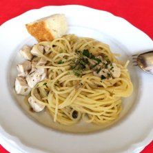 箱根町はずれ、日本橋川を背中に背負ったビルの2階にひっそりと佇むイタリアン。ランチは2種類のパスタ。Bの自家製タリアテッレ ポルペッティ(ミートボール)ときのこトマトソース煮込み 1000円。スープにフォカッチャが付いて、旨旨!