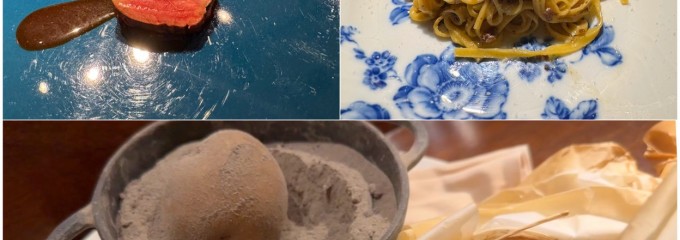 午後半休取れたのでママ友とイタリア郷土料理ランチ♪ ローマの春をテーマにした前菜♡新玉ねぎとハマグリスープ、イタリアそら豆キッシュパルメザンチーズのソース、北海道産肩ロース、パプリカのソースのなんとか、真鯛、鎌倉野菜のバーニャカウダソース♡ リボッリータのズッパ♡この店の名物ズッパ(イタリア郷土料理のスープ)野菜とお豆をじっくり煮込んでパルメザンチーズをたっぷりかけたオーブン焼き♪、6種類の山菜とバーニャカウダソースのクリーム タヤリン。4種のデザート♡