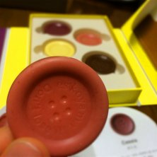 es-koyamaのボタンチョコ! 「なくしちゃダメだよ」とのメッセージ付きで全5色。すっごいかわいい♫