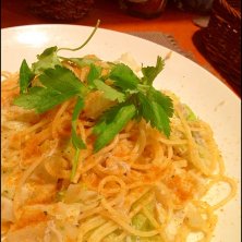 シラスとキャベツ, カラスミの塩味(サラダ、ドリンクつき) 997円 今日のお昼。 たまにはパスタでもとここに行きました。 この組み合わせ合う〜♪ 悔しいけど、パスタにすると腹持ちがいい。