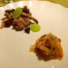 冷前菜 牛フィレとシャインマスカットと茸 サーモンの南蛮漬け