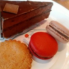 ホテルニューオータニにて、ピエール・エルメ・パリのデザートセット♡ 限定に弱い私 超濃厚なチョコレートケーキと思ったらまさかのチーズケーキ マカロンも~~~!!!!