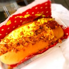 須磨寺のお参り帰りに寄ったホットドック屋さんだよ。 須磨寺では福禄寿さまの御朱印をいただいて、ながーい頭をなでなでしてきたよ! 素敵なお寺だったなぁ。 デンマークホットドック フライドオニオン ウインナー ピクルスのベーシックパターンなのにめちゃくちゃ美味しい♥ パンが回りはパリッと、中はふんわりだから食べやすいしはまりそぅ