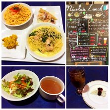 本日のランチ☆日本で初めてピザを紹介した ニコラスにて。 ・前菜2種 ・カニのトマトクリームパスタ海老っ子添 ・サーモンとほうれん草のクリームパスタ ・サラダ ・スープ ・デザート ・ドリンク 夜も期待出来る良いお味♪ 次回はワインと共に頂きたいです(^-^)