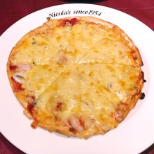 今日のお昼は新橋でピザ(^_^) 昔懐かしいチーズのピザが食べたいとの家内の希望に応えて、食べに行きました😊 これはシーフードピザ!チーズがたっぷりのっていてよく見えませんが、海老、カニ、アサリ、イカ、オニオン、ピーマンが入っています😋