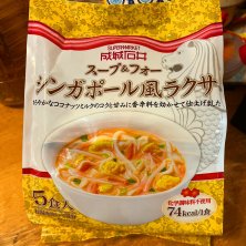 成城石井でみつけたラクサフォー✨ 本格的な味ですねー。 日清カップラーメンのシンガポールラクサが大好物なのですが、これも美味しいー😍スープになんかサクサクする具材が入ってるー。なんだろう。大根? 乾燥もやしだってさー!