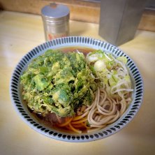 春菊そば 冬の朝、チャリ20分漕いた後の温かいそばは最高。