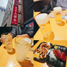 【昨日からの続きの今朝のこと…】 ・チューハイ・ジンボール・クリアアサヒ ・帆立刺し・サーモン刺し・マグロ刺し・タコ刺し ・焼き鳥(もも・つくね)・冷やしたぬき蕎麦 ネットカフェでの朝ごはんを食べて、部屋に戻り 片付けをして、旧友と再び合流し、朝呑みする為 ここに( ´ ▽ ` )b ここは24時間やってるお店で、コスパもいいので よく行く場所😆お手頃価格が多いお店なのに、 お刺身が美味しいので、ついつい頼んじゃう😋 旧友と、昨日からの話で盛り上がってたら、時間 あっという間に過ぎて…