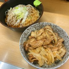 今日の Bランチは牛丼生玉子たぬきそば 500円