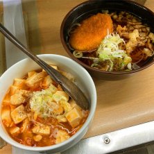 本日のB定食 かつ丼とたぬきそば+春菊天 560円也