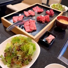 鶴橋にキムチを買いに来たついでに、 焼肉ランチ。 写真は奥さんが注文した牛スジ丼 サラダ、キムチ、スープが付いて500円! しかもサラダとスープはおかわりできるし、 食後のドリンクまで付いてあり得ない… 僕は冷麺セット焼肉付きをいただきます( ´ ▽ ` )ノ 早めに来ないと混むぜ〜