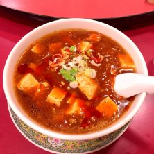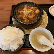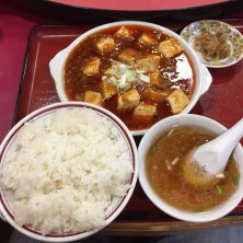 今日の昼は市民市場内中華屋さんへ 麻婆豆腐定食ですが昨日のドラゴン食堂より辛さは気持ちまろやかですが汗は昨日以上出ますねぇ(≧∇≦) 二日酔いの時は辛さ増し増しの麻婆麺か酸辣湯麺で汗でアルコールを強制退去です