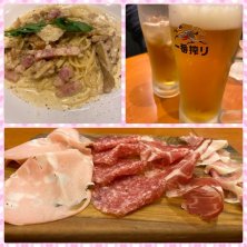 ・ハム4種盛り ・松茸パンチェッタクリームパスタ ・生ビール ・ジンジャーハイボール 前に来た時は体調悪くて食べれなかったけど、今日は堪能♡ ワイン飲みたかったけど、とりあえずのビール。 パスタおいしかった!