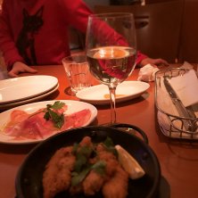 土曜日のなんばパークスは混んでいて、 予約しないといいレストランには入れない、、。 歩き疲れて店選びは妥協しました(ー ー;) 基本ビールとワインがあれば何でもOKなので、 ビールを一気飲みして白ワインとプロシュート! 今日は息子と2人で難波デートなので新鮮で楽しいな〜( ´ ▽ ` )ノ