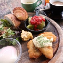 1人ランチ🎶 大きな園芸センターまで、 足を伸ばして、ハーブ🌿や花を物色中🤭 併設のカフェでランチプレート食べて、リフレッシュ💚 🐟のフリット。 オーガニックCoffee付き。 植物や花を眺めながらのテラスは気持ちいい~💞