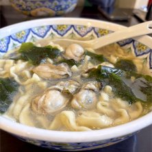 冬牡蠣ラーメン。 選べる麺は刀切麺で。 優しい味で、ホッコリ♪ ♪( ´▽`)