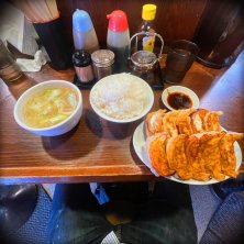 今日は変則的に東陽町出社。午後は在宅にするため移動。せっかくなのでこの前美味しかった来来軒へ。今日は他の方もやっていた餃子2人前にライスと餃子定食!餃子大きいからボリュームすごっ!1550円也。タンメンスープもついているのがいいね。ここは辣油も美味しい。今度餃子定食するなら小ライスだな。美味しゅうございました。ご馳走様でした!