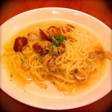ナスとフレッシュトマトの和風クリーム♡ ここのパスタはめっちゃモチモチでおいしいです(*^^*) ランチタイムは3パターンの具、15種類のソースから好きな組み合わせをチョイスできるので決めるのに時間がかかっちゃいます♫