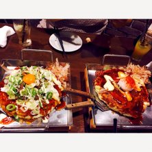 メレンゲ入りのお好み焼き。 パンケーキみたいにふわふわで新しい食感。もはやお好み焼きって、感じじゃないかなー