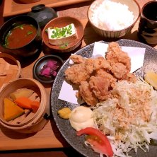 今日は居酒屋が始めたお外ランチにしました。 ザンギ定食950円。無料コーヒーつき。 せいろ蒸し野菜、冷奴、しじみのお味噌汁と副菜が色々あって、ごまふりかけもかけられるからバラエティはあるけれど、唐揚げもう1.2個減らして800円台にして欲しいなぁ。 大曽根はランチの平均単価がだんだん上がってる気がします。