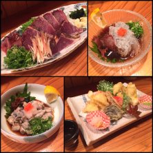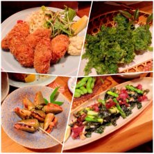 続きましてカキフライ、アオサの天ぷら、チャンバラ貝の煮付、ワカメとアスパラの柚子バター炒め。食べた食べた食べたー。