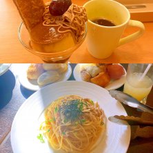 30日、日曜日のランチ♪ パスタランチ ☆とろろ明太子ときのこの和風ソース ガスト ☆マロンと珈琲のモンブランプリンサンデー 今日は中学の時の部活の友達と、ランチしてきました♬ 生パスタのお店で、パン食べ放題に、ドリンクバー、そしてなぜか、 カレーも食べ放題(*´艸`*) どんだけ、パン取ってるんだか(笑) まだまだ食べてます☆彡 満席だったので、2時間で追い出され、 ガストで、食後のデザートと、ドリンクバーで、 喋りまくってたら、気づかぬ内に、 日がくれてました〜(૭ ᐕ)૭